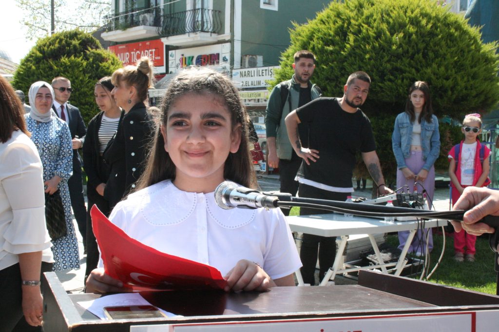İl Milli Eğitim Müdürü Yılmaz ise 23 Nisan bir kez daha coşkuyla kutlamanın onur ve gururunu yaşadıklarını dile getirdi. Yılmaz; "23 Nisan Ulusal Egemenlik ve Çocuk Bayramı milletimizin bağımsızlık ve egemenlik inancının bir simgesi olarak gönüllerdeki yerini korumaktadır. Eğitimciler olarak bizlere düşen, bizlere emanet edilen yarınlarımız olan çocuklarımıza tarihimizin önemini ve ulusal egemenlik bilincini kazandırmanın yanı sıra vatan sevgisi ve duygusunu aşılamak, aynı zamanda ortak tarih ve kültür bilincimizi aktarmaktır" diye konuştu.