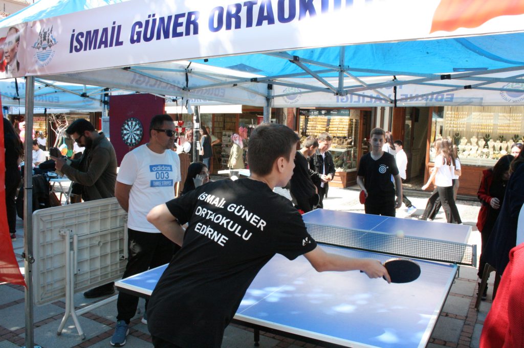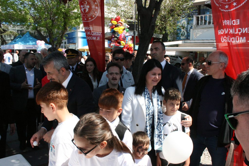 Edirne Valisi Yunus Sezer ve Edirne Belediye Başkanı Filiz Gencan Akın da caddede kurulan stantları ziyaret ederek çocuklarla sohbet ederken, halk oyunları gösterisini de takip ettiler.