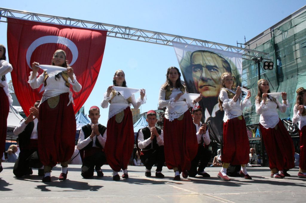 Diğer yandan 23 Nisan kutlamaları, kentin Saraçlar Caddesi'nde çocuklar için kurulan oyun stantları ve Kosova, Bosna Hersek, Bulgaristan, Yunanistan, Karadağ, Makedonya, Sırbistan, Moldova ile Tekirdağ ve Çanakkale'den gelen halk oyunları ekiplerinin dans gösterileriyle devam etti.
