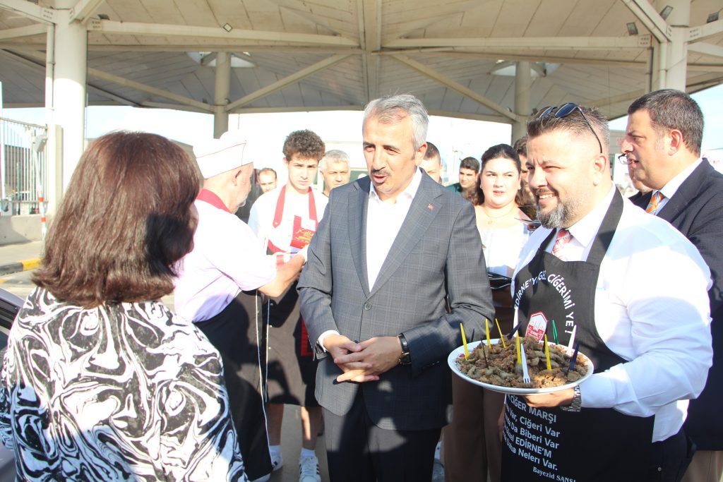 Giriş yapan gurbetçilere Edirne’yi Tanıtma ve Tava Ciğer Kalite Kontrol Derneği Başkanı Uğurcan İmrak tarafından tava ciğer, Edirne’nin ünlü şekerleme ustası Arif Meriç tarafından ise badem ezmesi ikram edildi. Gurbetçiler, yıllar sonra vatan topraklarına ayak basmanın verdiği heyecan ve mutluluğu gözyaşlarıyla dile getirdi.