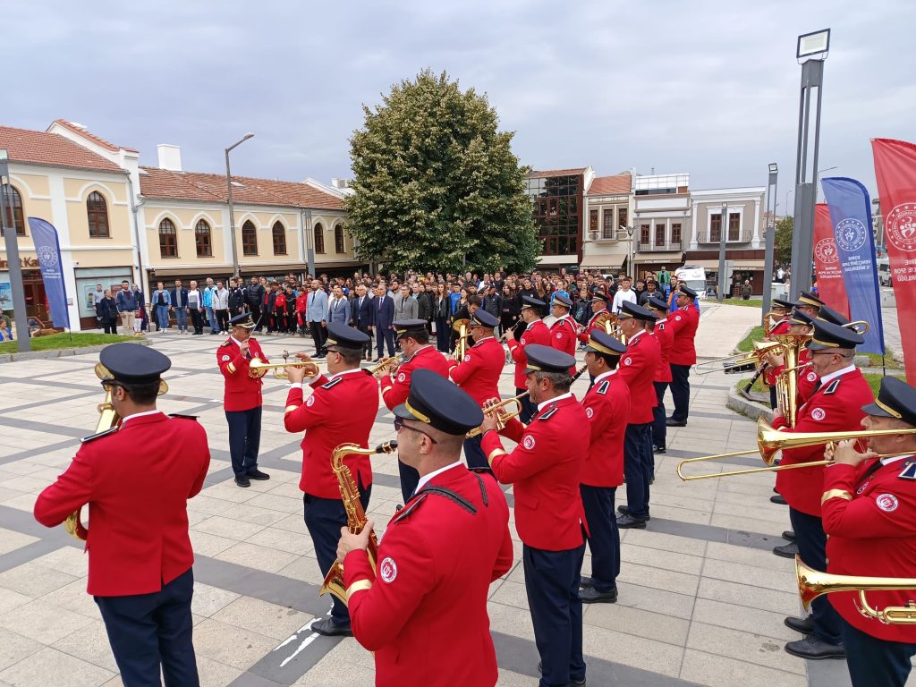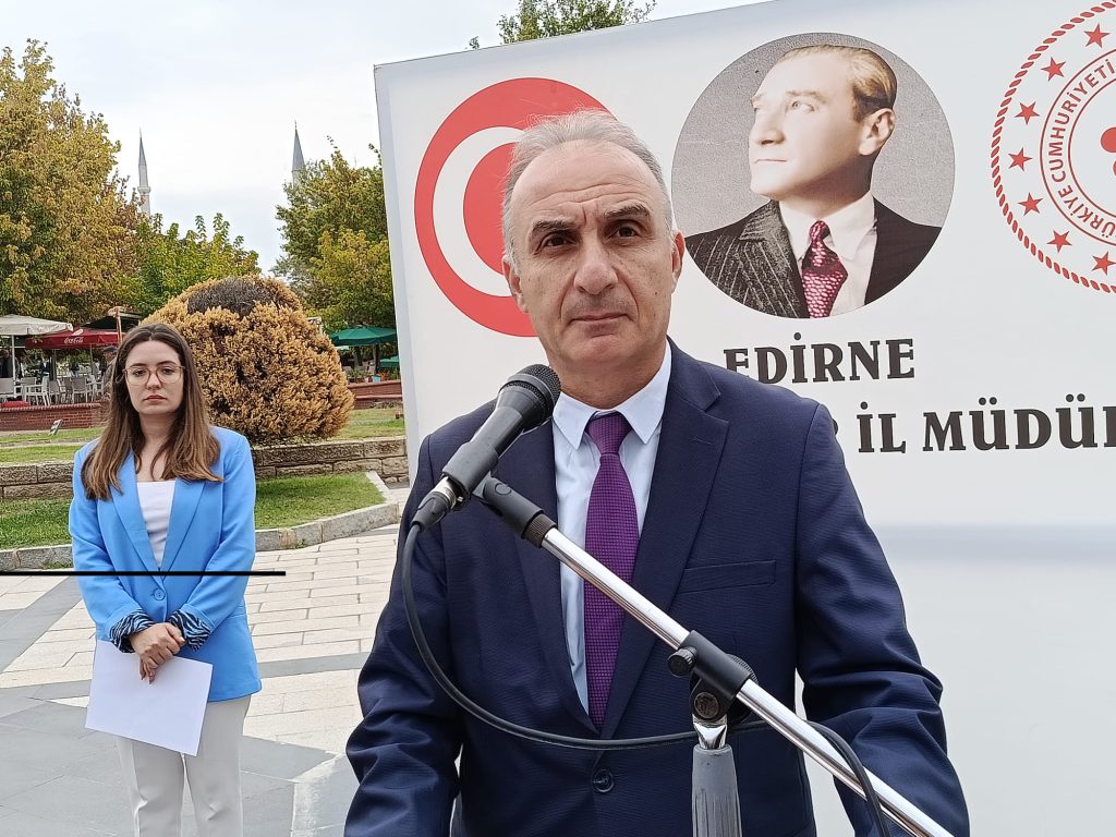 Tören, İl Müdürü Selim Ak tarafından anıta çelenk sunulmasıyla başladı. Ardından Edirne Belediye Bandosu eşliğinde saygı duruşunda bulunuldu ve İstiklal Marşı okundu.