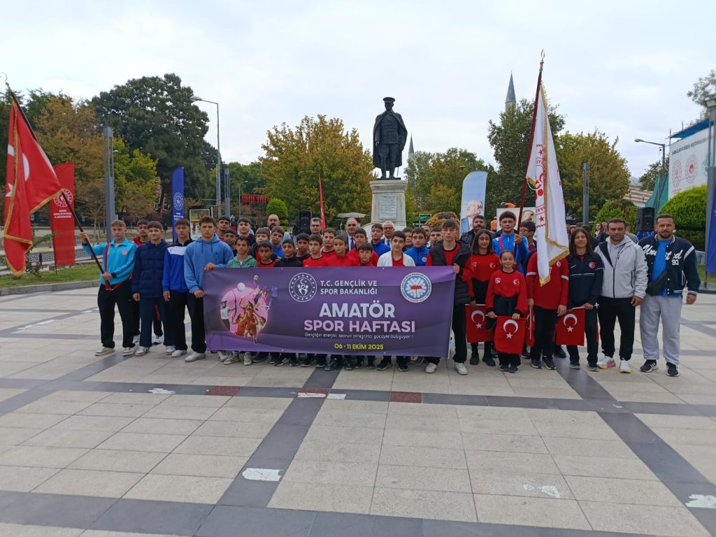 Edirne’de 6-10 Ekim Amatör Spor Haftası etkinlikleri, Gençlik ve Spor İl Müdürlüğü tarafından düzenlenen kortej yürüyüşü ve çelenk sunma töreniyle başladı.