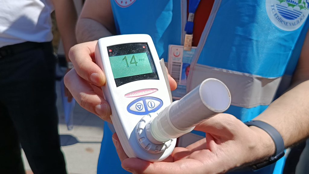 Edirne’de 3-9 Eylül Halk Sağlığı Haftası kapsamında, İl Sağlık Müdürlüğü ve Yeşilay Edirne Şubesi iş birliğiyle vatandaşları sigarayı bırakmaya teşvik etmek amacıyla bilgilendirme standı kuruldu. Kentin trafiğe kapalı Saraçlar Caddesi’nde açılan stantta, vatandaşlara sigaranın zararları anlatılırken, özel bir cihazla karbonmonoksit ölçümü de yapıldı. Edirne İl Sağlık Müdürü Mustafa İshak Yıldırım da stant alanını ziyaret ederek çalışmalara katıldı.