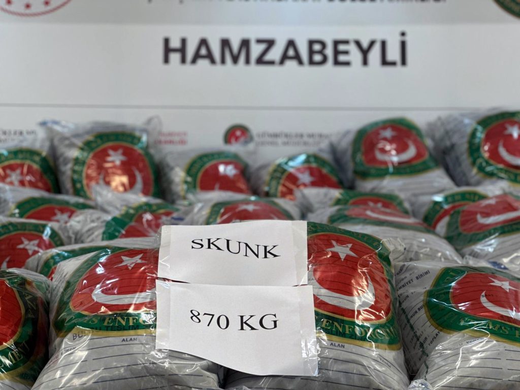 Edirne’nin Bulgaristan’a açılan Hamzabeyli Sınır Kapısı’ndan Türkiye’ye giriş yapan bir TIR’da Edirne Gümrük Muhafaza Kaçakçılık ve İstihbarat Müdürlüğü'ne bağlı ekipler tarafından yapılan arama sonucu, 870 kilogram skunk maddesi ele geçirildi.