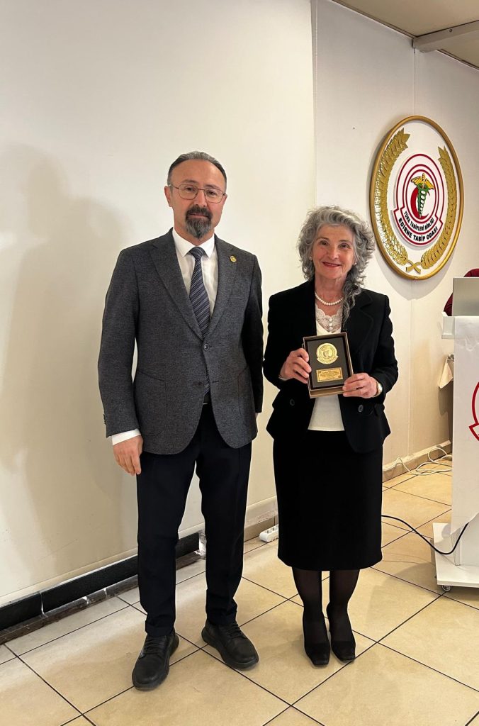 Meslekte 50. yılını dolduran Dr. İnayet Dikim’e plaketini, Celal Karlıkaya tarafından verildi. Törende hekimlerin mesleğe verdikleri uzun yıllara dayanan emek ve özveri vurgulanarak, sağlık alanına katkılarından dolayı teşekkür edildi.