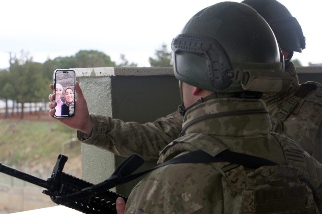 Nöbet kulübesinde görevi başında olan asker, komutanı tarafından ailesiyle görüntülü konuşturuldu. Ailesinin ve Türk milletinin yeni yılını kutlayan asker; "Anne, baba yeni yılınız kutlu olsun. Sizden uzakta olabilirim ama burada komutanlarımız ve arkadaşlarımızla birlik, beraberlik ve huzur içerisinde yeni yılınızı kutluyoruz. Hepsinin sizlere selamı var; vatan bizlere emanet, siz de Allah'a emanet olun, hepinizi çok seviyorum" diye konuştu.