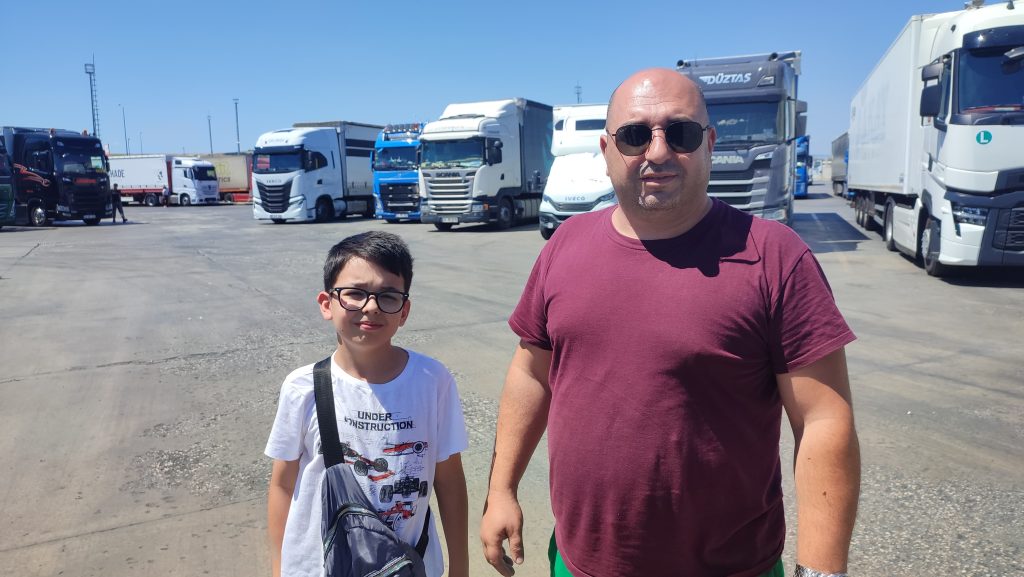 Bayramı ailesinden ayrı geçiren TIR sürücüsü Hüseyin Özlem, 11 yaşındaki oğlu Hasan Özlem’e pasaport ve vize çıkardı. İhracat yolunu oğluyla birlikte geçiren baba Hasan Özlem, oğlunun yanında oluşunun, aileden ayrı geçen bayramda bir nebze olsun gönlünü ferah tuttuğunu belirtti. Özlem; “Bayramda yollardayız. Bayramları evimizde ailemizle birlikte geçirmek isteriz. Ben de çocuğumu yanıma aldım. Göremiyorum çünkü. Pasaportunu, vizesini ayarladım. En azından göremediğim için yanında götürmek istedim. Avrupa’ya çalışıyorum. Avrupa’nın her ülkesine gidiyorum. 4-5 yıldır bu mesleğin içerisindeyim. Bayramlarda aileden uzak kalmak, bana çok kötü duygular hissettiriyor. Eşimden ve küçük kızımdan ayrı. İkisini evde bırakıyorum. Hakikaten zor oluyor. En çok eski bayramları özledim. Ailemle oturup babaanne, dede, eşim, babam, annem ve kardeşim hep birlikte oturmayı, bayram sabahını, el öpmeyi özledim. Bayramımız hiç bayrama benzemiyor. Oğlum yanımda ama kızım yok, eşim yok. Tabi duygulanıyorum konuşurken. Zor oluyor ama en azından oğlum yanımda. Biraz gönlümü ferah tutuyor” şeklinde konuştu.
