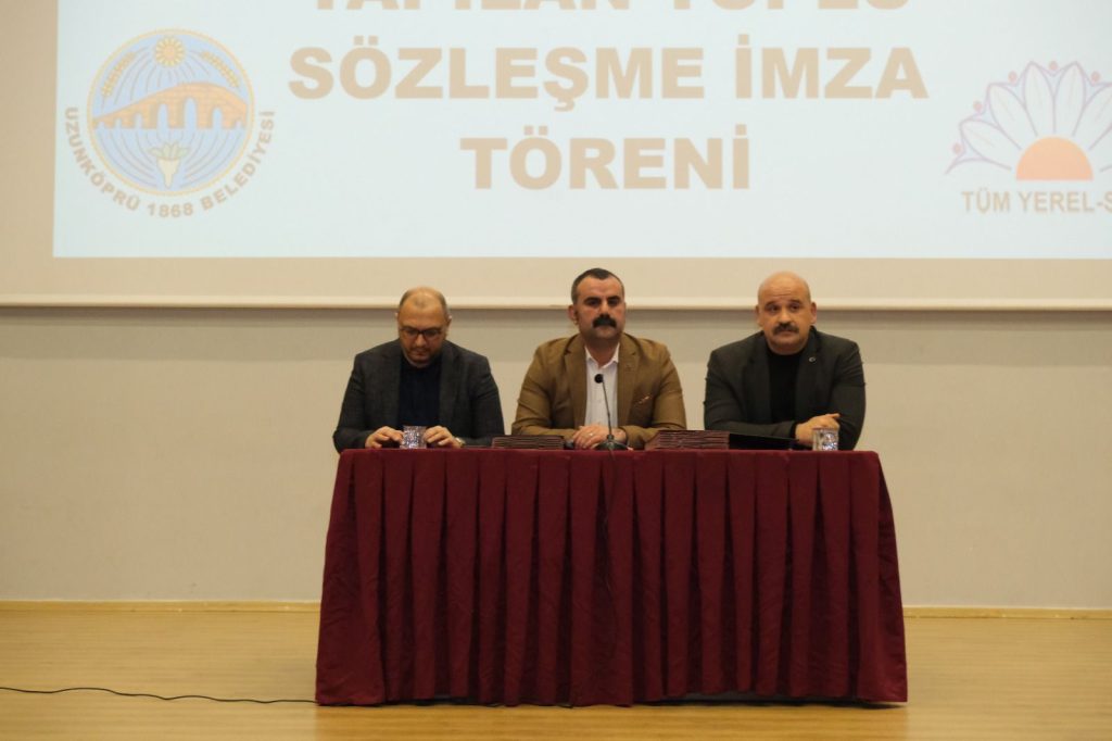 Uzunköprü Belediye Başkanı Ediz Martin ile Havsa Belediye Başkanı Hüseyin Özden, belediyelerinde görev yapan memurlar için Tüm Yerel-Sen'in Sosyal Denge Sözleşmesi'ni tavan tutardan imzaladı.