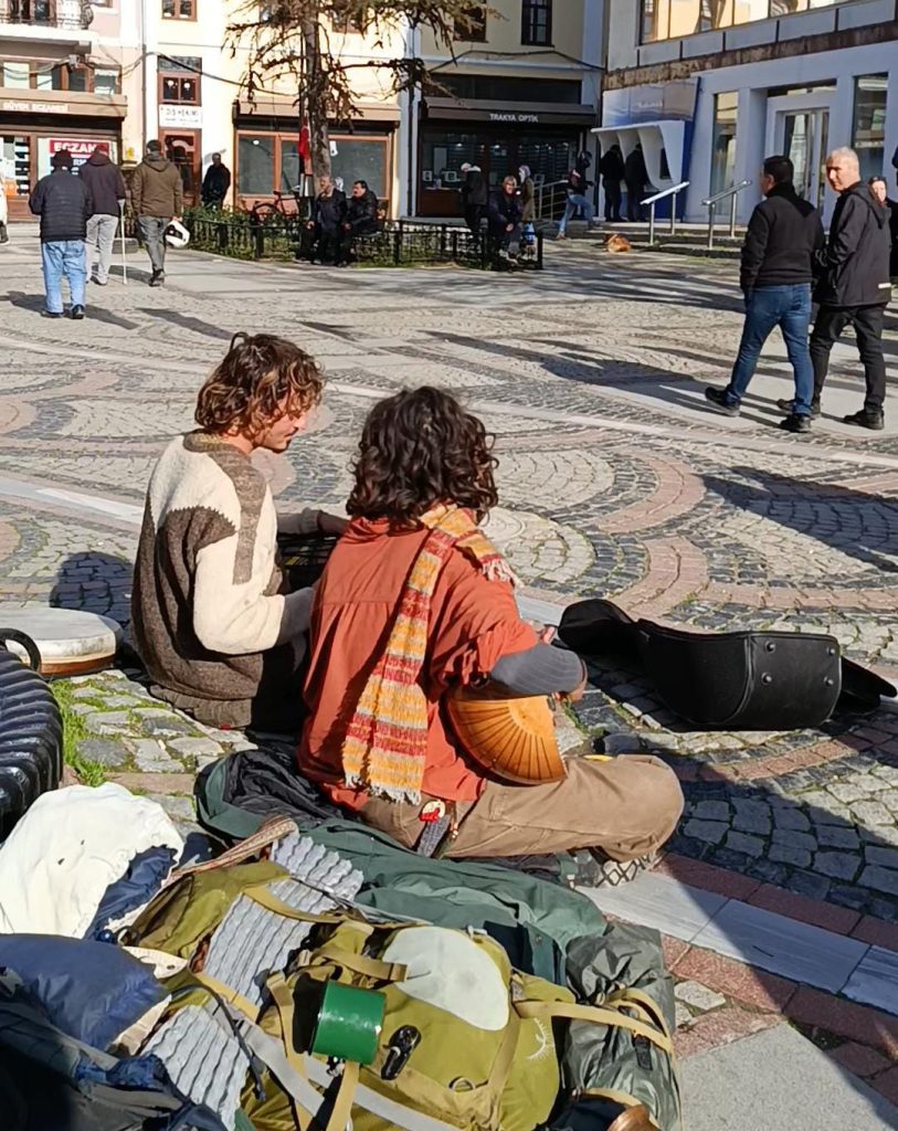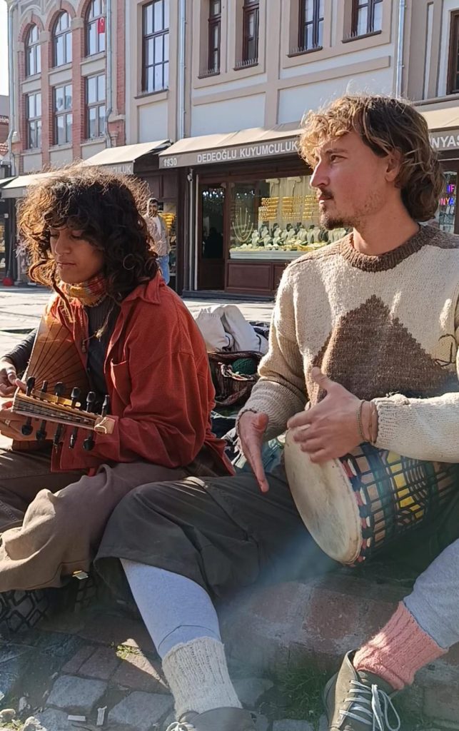 Balkan turuna çıkan Hollandalı Naomi ile Kuzey Makedonyalı Martin, maddi ihtiyaçlarını sokak müziğiyle karşılayarak ilerledikleri yolculuklarında Edirne’ye uğrayıp Saraçlar Caddesi’nde performans sergiledi. Yaklaşık 2,5 aydır Türkiye'yi gezen ikilinin bu dinletisi Edirnelilerden ilgi görürken, kısa performanslarının ardından Bulgaristan'ın başkenti Sofya'ya doğru yola çıktılar.
