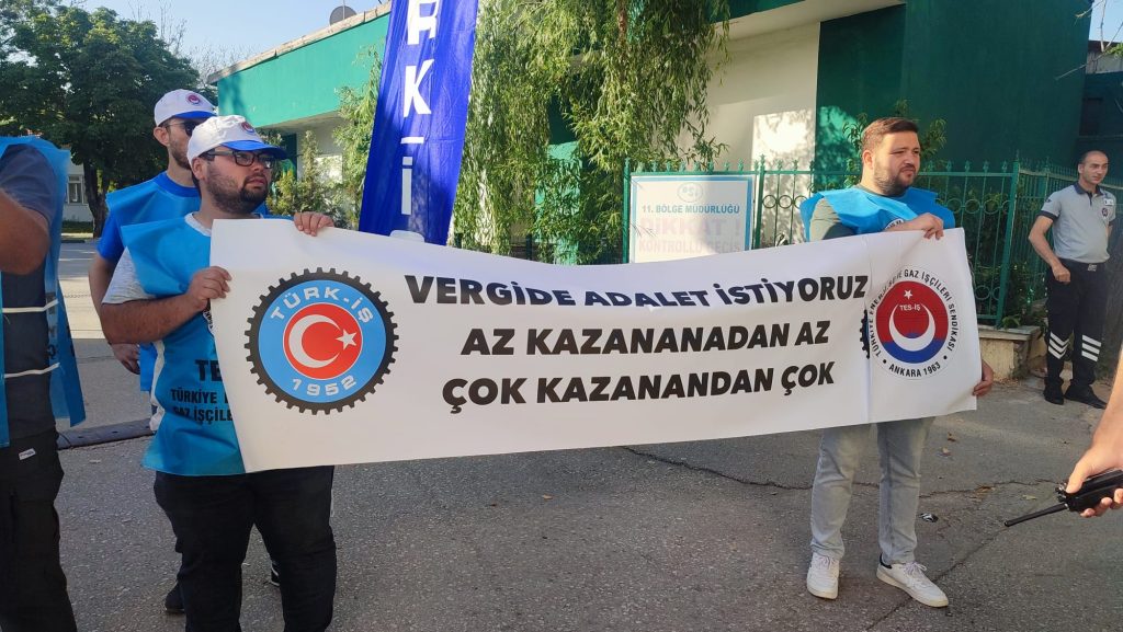 “Emekçi üzerine düşeni yapmıştır, yapmaya da devam etmektedir” diyen Şişko; “Bizi yönetenler de sosyal devletin gerektirdiği görevini yerine getirmelidir. Hükümet en kısa zamanda süreci daha fazla uzatmadan, işçinin emekçinin hakkını vermeli, adil ve kabul edilebilir bir çözümle sonlandırmalıdır. Bu böyle gitmez! Siz duymazdan gelirseniz, biz duyurmayı biliriz! Masa susarsa, meydanlar konuşur! Bu işin sonu greve kadar gider! Artık yeter! Sadaka değil, hakkımızı istiyoruz. Onurlu bir yaşam, adil bir ücret, güvenceli bir gelecek istiyoruz. Bugün buradayız, iş yerlerimizin önünde bildirilerimizi okuyoruz. Yarın alanlarda olacağız. Geçinemiyoruz, susmuyoruz, geri adım atmıyoruz. Emekten gelen gücümüzü kullanır, gereğini yaparız!” ifadelerini kullandı.