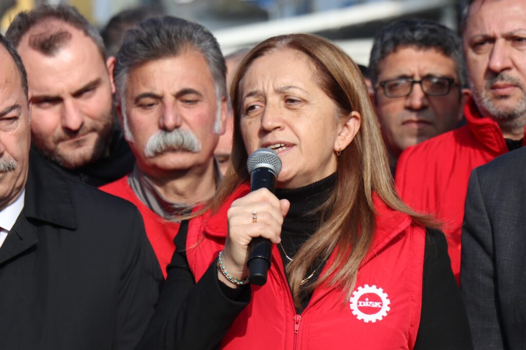 Türkiye Devrimci İşçi Sendikaları Konfederasyonu (DİSK) üyeleri Saraçlar Caddesi’ndeki PTT’nin önünde bir araya gelerek her bir ağızdan ‘gelirde adalet, vergide adalet, insanca yaşayacak ücret’ diyerek DİSK Genel Başkanı Arzu Çerkezoğlu’nun da katılımlarıyla taleplerini ifade ettiler. Düzenlenen eylemde konuşma yapan Çerkezoğlu, “Her yıl DİSK olarak yeni bir rakam önerisi de paylaşıyoruz. Ama ilk defa bu yıl artık asgari ücrette rakamların peşinde koşmayacağız. O nedenle de bir rakam önerimiz yok” diyerek TBMM’ye sunduklarını 5 maddeli kanun teklifinden bahsetti.