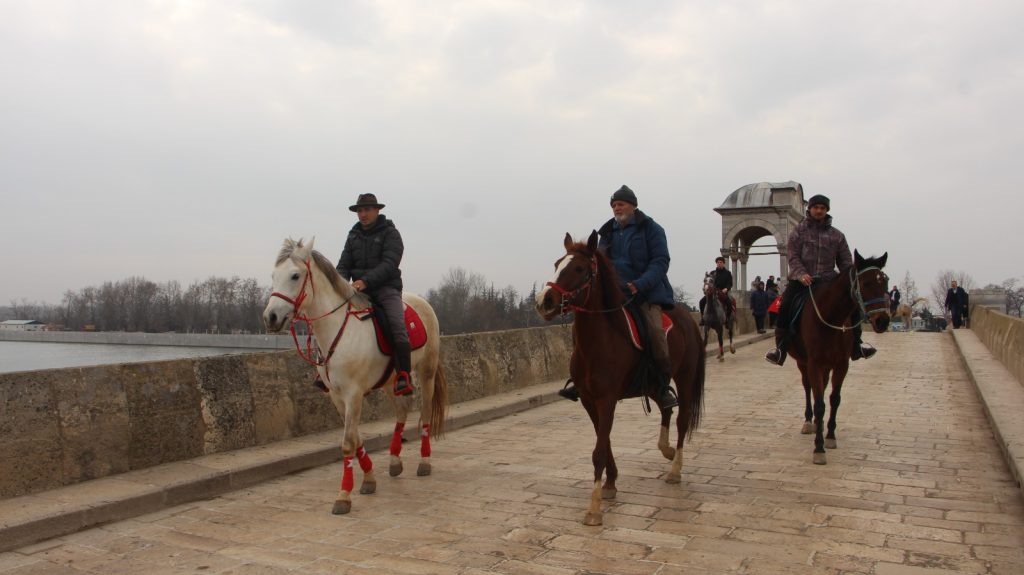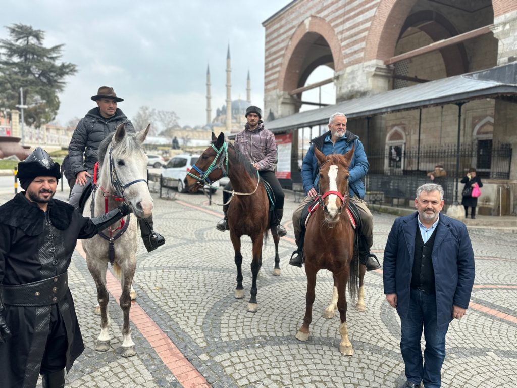 Endülüs Müslümanlarının 500 yıllık at sırtında hac yolculuğu geleneğini yeniden canlandırma hedefiyle, memleketleri İspanya’dan yola çıkan 3 Müslüman hacı adayı Abdallah Hernandez, Abdelkader Harkassi ve Tariq Rodriguez, yaklaşık 3,5 aylık yolculuğun ardından Türkiye’ye ulaştı. Yolculuklarının Türkiye ayağına Edirne’den başlayan hacı adayları, kentin tarihi Meriç ve Tunca Nehirlerinden geçerek, Saraçlar Caddesi’nde ilerledi. Hacı adayları, yarın kutsal topraklara doğru yolcuklarına devam ederek, Edirne’den ayrılacaklar. Atlı hacı adaylarını gören vatandaşlar da yoğun ilgi göstererek hatıra fotoğrafı çektirdi.