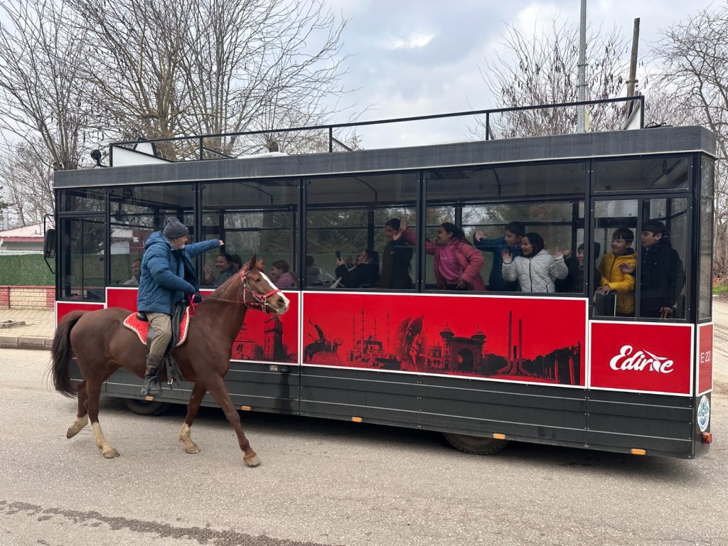 Hacı adayları, Edirne’nin Karaağaç Mahallesi üzerinden başladıkları Türkiye yolculuklarında, önce kentin Meriç Köprüsü, Tunca Köprüsü, Saraçlar Caddesi ve Çilingirler Çarşısı’nda ilerledi. Adaylar, daha sonra Cuma namazlarını icra etmek üzere Eski Cami’de mola verdi. At üzerindeki hacı adaylarını gören vatandaşlar da yoğun ilgi göstererek, cep telefonlarının kameralarıyla o anları ölümsüzleştirdi.