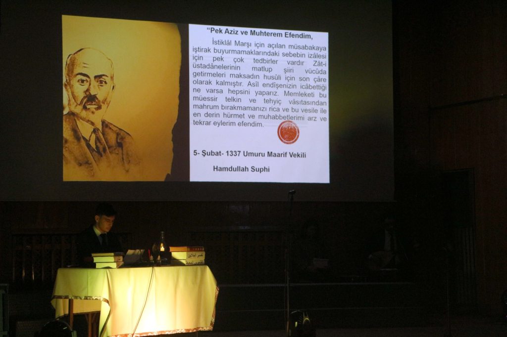 İstiklal Marşı’nın kabul edilişinin 104’üncü yıldönümü ve Mehmet Akif Ersoy’u anma etkinlikleri dolayısıyla, Edirne Halk Eğitim Merkezi’nde program düzenlendi. İlkokul öğrencisi Zeynep Sevde Soyak’ın İstiklal Marşı’nı okuduğu ve 80’inci Yıl Cumhuriyet Anadolu Lisesi öğrencilerinin hazırladığı oratoryo gösterisinin sunulduğu programda, duygu dolu anlar yaşandı.