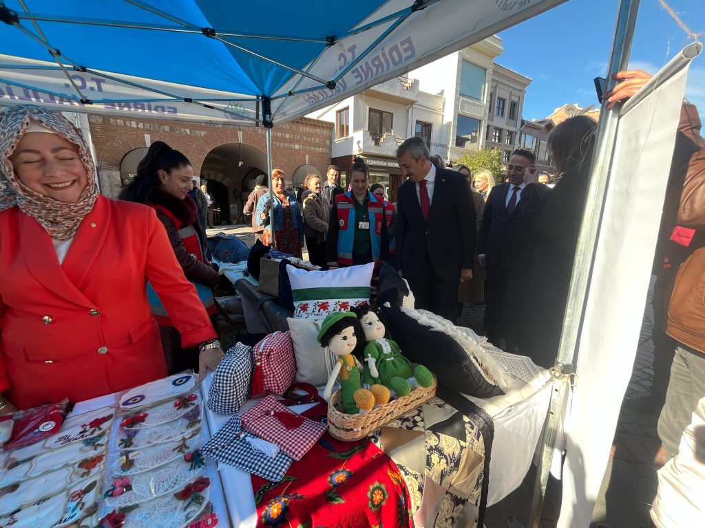 Edirne Sosyal Dayanışma Merkezi’nde (SODAM) üretilen ürünlerin satışa sunulduğu ve kadına karşı şiddet konusunda bilgilendirme yapılan standı Edirne Valisi Yunus Sezer ve eşi Canan Sezer de ziyaret etti.