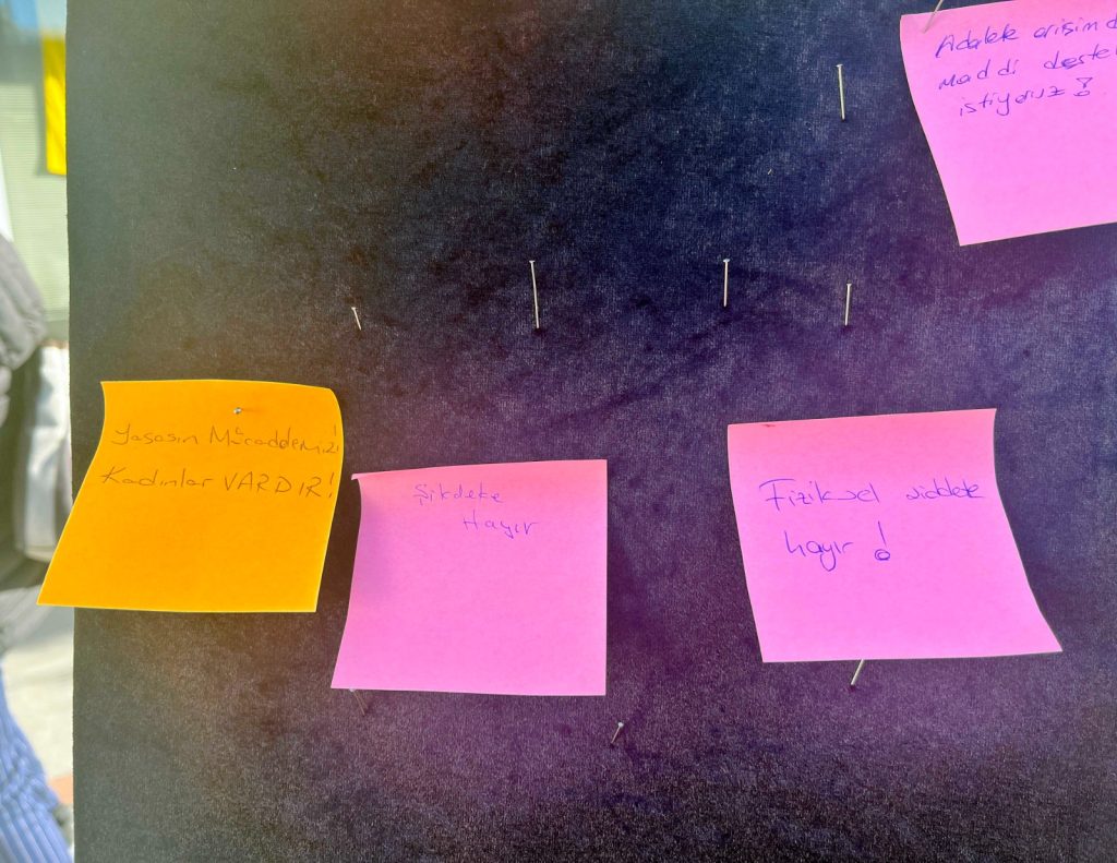Edirne’de 25 Kasım Kadına Yönelik Şiddette Karşı Uluslararası Mücadele Günü dolayısıyla, Edirne Barosu Kadın Hakları Komisyonu üyesi avukatlar, kadına yönelik şiddetle mücadele konusunda vatandaşların önerilerini aldı. Baro Kadın Hakları Komisyonu Başkanı Bedia Mutlu Mirzabey, vatandaşların kağıtlara yazarak panoya astığı önerileri, kitaplaştıracaklarını açıkladı.