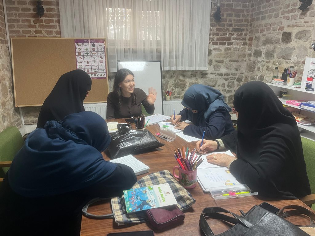 İlk başta yalnızca bir kadının başvurduğunu anlatan Yılmaz, “O kadınımız ‘Okuma yazma öğrenmek istiyoruz’ dedi. Onun isteğiyle kapı kapı gezdik. Ardından muhtarlık binasında eğitimlere başladık. 1 kadınla başlayan bu süreç bugün 15 kadına ulaştı. Konak Edirne açıldıktan sonra öğretmenimiz buraya gelmeye başladı. Belediye Başkanımızdan rica ettik, sağ olsun bizi kırmadı. Bir servis ayarlandı ve kadınlarımız buraya gelmeye başladı. Burada kendilerini daha mutlu hissediyorlar” diye konuştu.