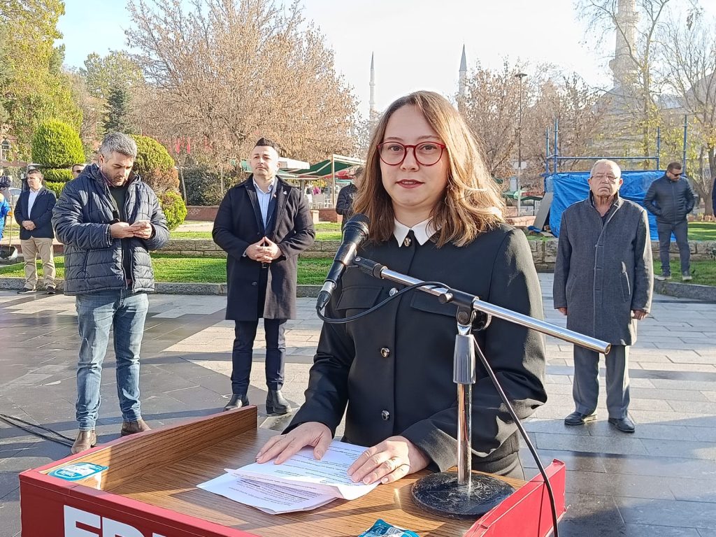 Atatürk Anıtı’nda Edirne Kadın Dayanışması adına açıklamayı Atatürk Mahallesi Muhtarı Gülden Akman Yılmaz yaptı. Yılmaz, 5 Aralık’ın kadınların düşüncesiyle ve iradesiyle toplumsal yaşamda yer aldığı devrimin adı olduğunu belirterek, "Atatürk kadınlara bu hakkı tanırken sadece bir yasal düzenleme yapmadı. Kadınların cumhuriyetin kurucu unsurlarından biri olarak gördüğünü bütün dünyaya ilan etti. Kadın geri itilirse toplum geriye gider. Kadının sesi kısılırsa toplumun sesi kısılır. Bugün kadınların seçme ve seçilme hakkı yasal güvence altındadır. Ancak bir hakkın kağıt üzerinde yazması yetmez. Haklar günlük yaşamda karşılık bulduğunda gerçek anlamına kavuşur. Bu nedenle kadınların siyasette eşit temsil hakkı, tören mekanizmalarında yer alması eğitim ve istihdam olanaklarına erişimi, şiddetten uzak ve güvenli bir yaşam sürmesi, kamusal alanda özgürce var olması hala mücadele gerektiren alanlardandır" dedi.