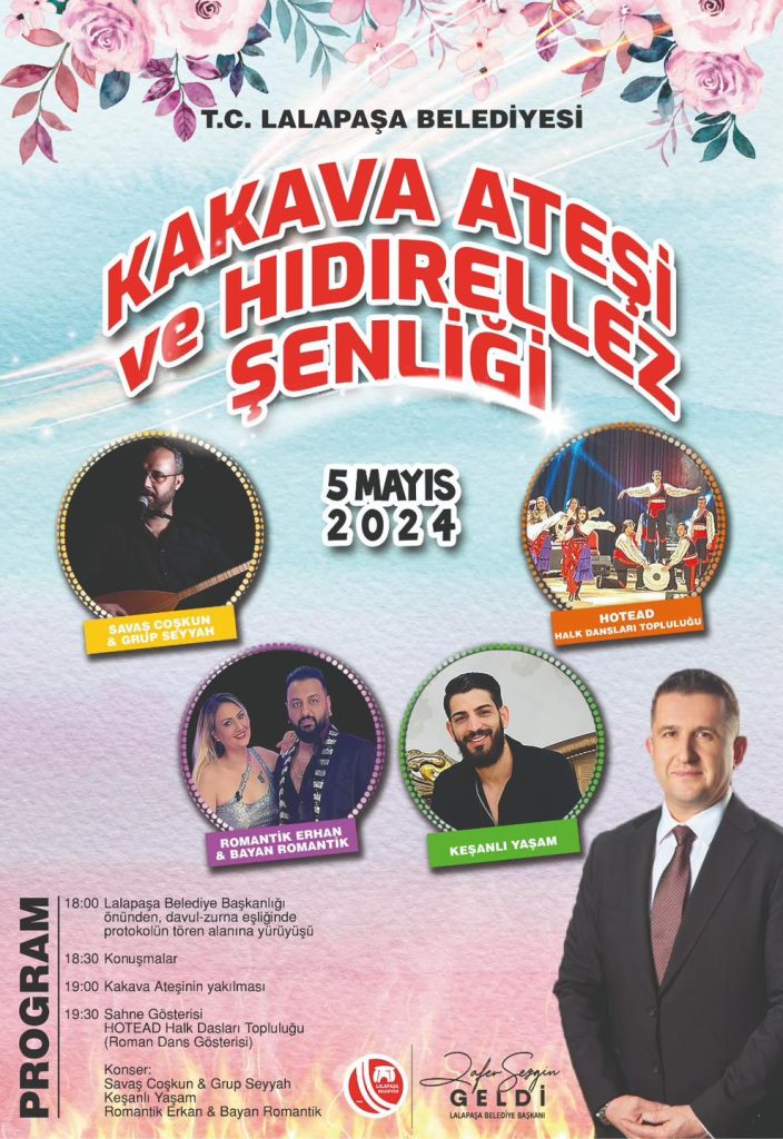 Lalapaşa’da 5 Mayıs Pazar günü Kakava ve Hıdırellez Şenlikleri düzenlenecek. Kakava ateşinin yanı sıra konser etkinliklerine de ev sahipliği yapılacak olan şenlikler hakkında konuşan Lalapaşa Belediye Başkanı Zafer Sezgin Geldi; “Uzun yıllardan beri ilçemiz kültürel faaliyetlere hasretti. Bu anlamda hızlı bir şekilde gereken çalışmaları yaptık. Çok cüzi bütçelerle bu festivali gerçekleştiriliyoruz” dedi.