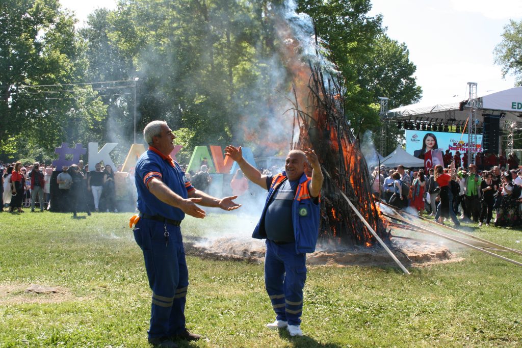 Konuşmaların ardından 1400 yıllık büyük Kakava ateşi, Edirne Valisi Yunus Sezer ve Belediye Başkanı Filiz Gencan Akın ve Çeribaşı Fikri Ocak eşliğinde protokol üyeleri tarafından yakıldı. Ateşin etrafında dans eden vatandaşlar, bolca fotoğraf çektirerek anı ölümsüzleştirildi.