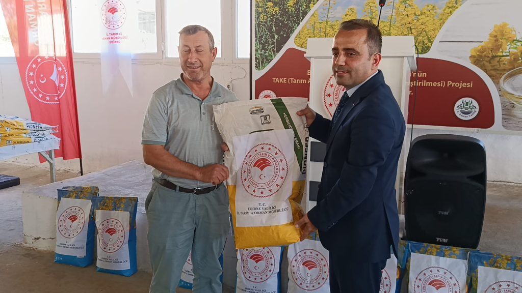 Edirne’de, özellikle kuraklık nedeniyle verim kaybı yaşanan ayçiçeğine alternatif olarak öne çıkan yağ bitkilerinden kanolayı teşvik etmek amacıyla yürütülen proje kapsamında üreticilere tohum desteği sağlandı. Tarım ve Orman İl Müdürlüğü tarafından yürütülen program çerçevesinde, 600 üreticiye yüzde 50 hibeyle toplam 12 ton 800 kilo kanola tohumu dağıtıldı.