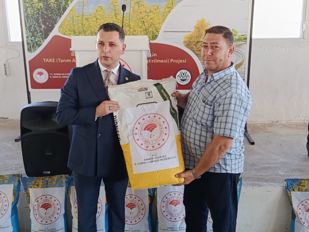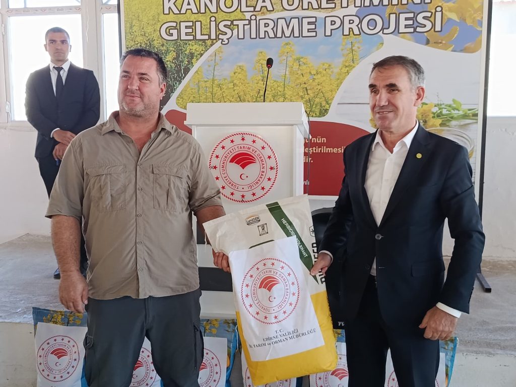 Törende konuşan Edirne İl Tarım ve Orman Müdürü İslam Köse, geçen yıl kentte 27 bin dekar alanda kanola ekimi yapıldığını, bu yıl bu rakamı 50 bin dekara çıkarmayı hedeflediklerini söyledi. Köse, “Projeyle birlikte Edirne’de kanola üretiminin artırılması, ülkemizin yağ açığının kapatılmasına katkı sağlanması ve üreticilerimizin gelirlerinin yükseltilmesi amaçlanıyor. Dağıtılan tohumlarla birlikte 2025 üretim döneminde ekim alanımızı 50 bin dekarın üzerine çıkarıp yaklaşık 17 bin ton ürün elde etmeyi planlıyoruz” dedi.