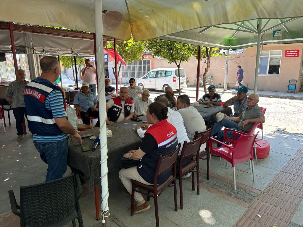 Edirne’nin Karaağaç Mahallesi’nde üreticiler, ekili tarlalarda doğa koşullarıyla kendiliğinden yetişen kenevir bitkileri hakkında bilgilendirildi. İl Jandarma Komutanlığı, İl Tarım ve Orman Müdürlüğü ile Karaağaç Muhtarlığı işbirliğinde düzenlenen toplantı, mahalledeki bir kahvehanede gerçekleştirildi. Katılımın yoğun olduğu toplantıya Karaağaç Muhtarı Eniz Dirim, jandarma ekipleri, tarım müdürlüğü yetkilileri ve çok sayıda üretici katıldı.