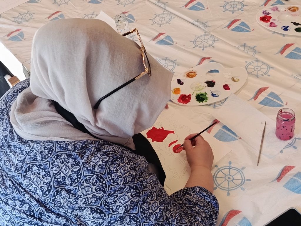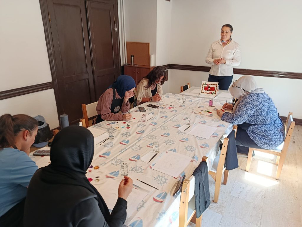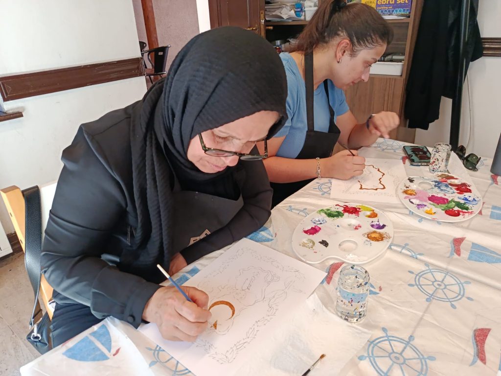 Atölyede katılımcılar, Edirne’nin simgesel değeri olan Edirne Kırmızısı renginden faydalanarak Edirnekârî sanatıyla Türkiye haritasını resmetti.