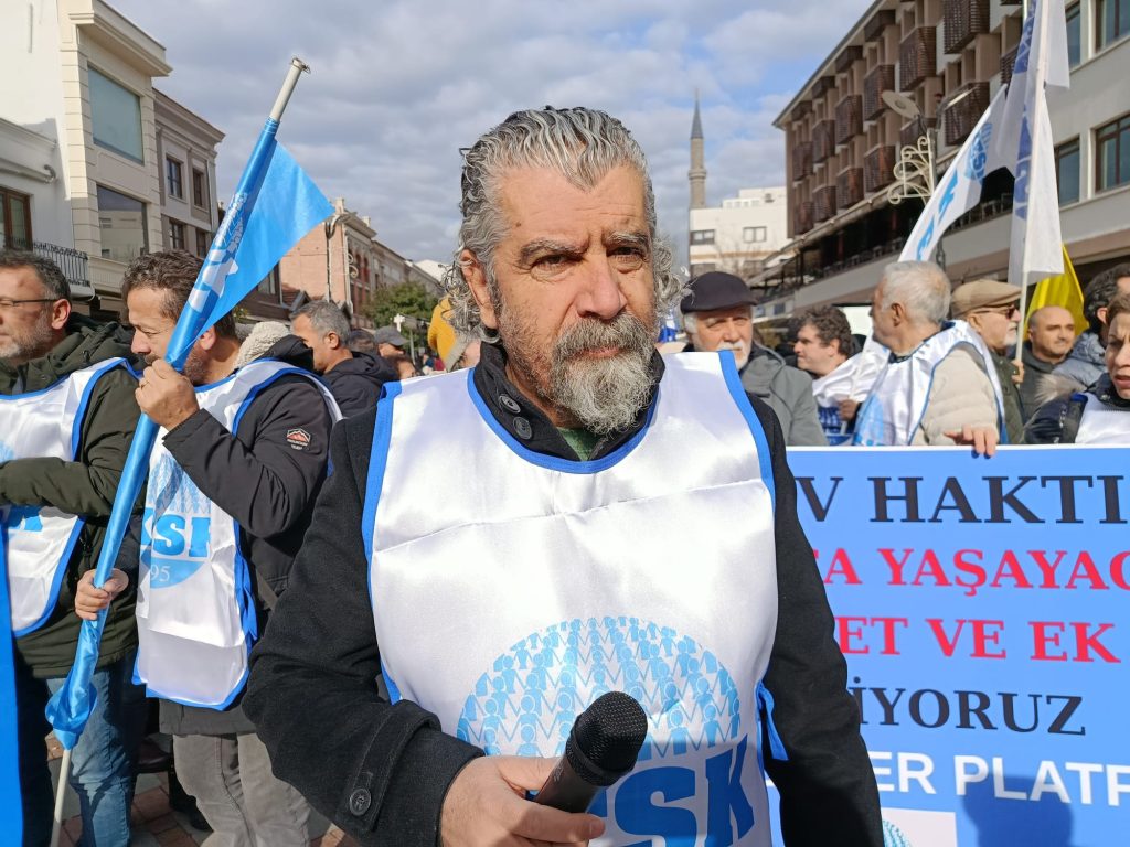 Katılımcılar adına basın açıklamasını okuyan KESK Edirne Şubeler Platformu Sözcüsü Ahmet Acet, iş bırakma gerekçelerini ayrıntılı şekilde anlattı. Acet, “Hepimizin hak ettiği insanca yaşam koşulları için bugün en temel hakkımızı, üretimden gelen gücümüzü kullanıyor, iş bırakıyoruz. Emeğimizin karşılığı için ülkenin dört bir yanında grevdeyiz. Bize neden iş bırakıyorsunuz? Ne talep ediyorsunuz? Diye soranlara cevabımız nettir. Yıllardır ‘geçinemiyoruz’ diye haykırıyoruz. Ancak ülkeyi yönetenler bu haykırışa kulak tıkıyorlar. Duymazdan geliyorlar. Geçinemiyoruz, çünkü: TÜİK’in sahte verilerine göre bile en yüksek enflasyon sırlamasında dünya beşinciliğine yükselen bir ülkede yaşıyoruz. Genel enflasyondan gıdaya, kiradan eğitime enflasyonun her türünde AB ve OECD ülkeleri içinde açık ara birinci sırdayız. AB ülkelerinin yıllık enflasyonu bizde sadece bir ayda yaşanıyor. Buna rağmen her yıl aynı tablo ile karşılaşıyoruz. Maaşlarımız Merkez Bankası’nın hiçbir zaman tutmayan enflasyon tahminine, TÜİK’in sahte verilerine göre arttırılıyor” diye konuştu.