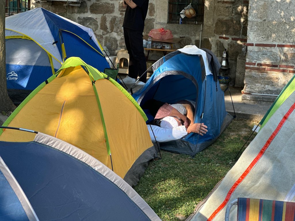 Edirne'de UNESCO İnsanlığın Somut Olmayan Kültürel Miras Listesi’nde yer alan 664 yıllık efsane Tarihi Kırkpınar Yağlı Güreşleri’ni izlemek için Edirne’ye gelen güreş tutkunları, kentteki otellerde yer bulamayınca Selimiye Camisi çevresine çadır kurarak konaklamaya başladı.