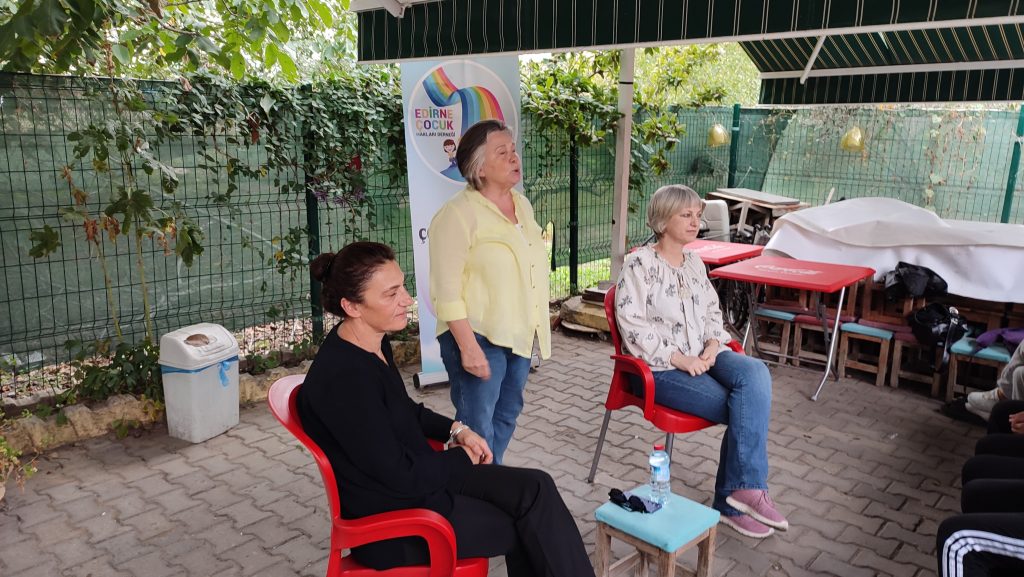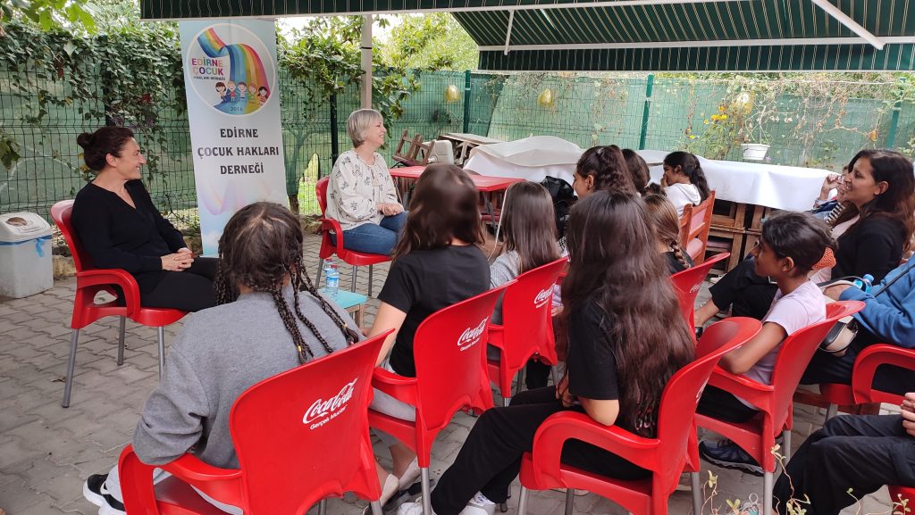 Edirne Çocuk Hakları Derneği tarafından, 11 Ekim Dünya Kız Çocukları Günü dolayısıyla kentin Yeniimaret Mahallesi’nde bulunan kafede, kız çocuklarına yönelik söyleşi etkinliği gerçekleştirildi. Kadın Cinayetlerini Durduracağız Platformu Genel Temsilcisi Gülsüm Kav ve Psikolog Semra Pehlivan’ın konuşmacı olduğu söyleşide; kız çocuklarına haklarını anlatarak, maruz kalabilecekleri durumlarda neler yapmaları gerektiğini anlattı.