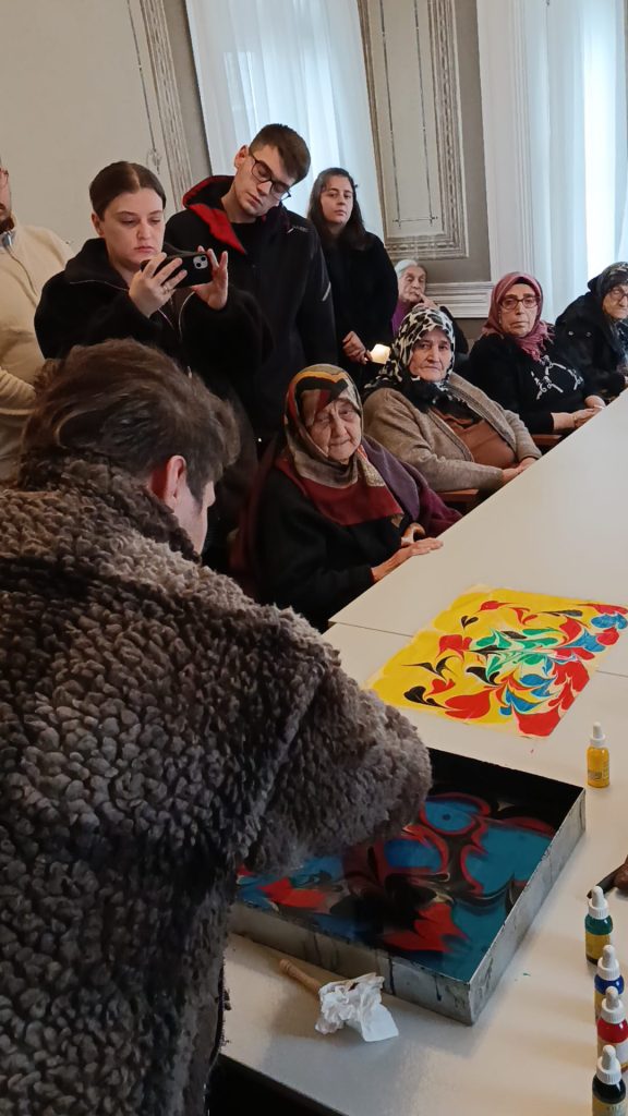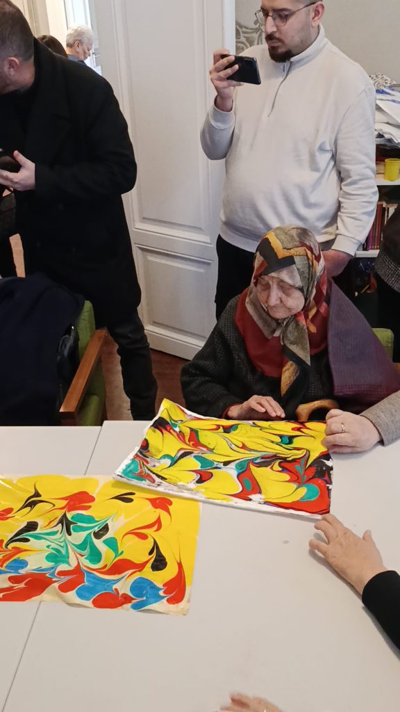 Buluşma kapsamında huzurevi sakinleri, Başkan Filiz Gencan ile birlikte ebru dersi alıp, bez çanta boyayarak keyifli anlar yaşadı. Renklerin suyla buluştuğu atölyede katılımcılar hem yeni bir deneyim kazandı hem de birlikte üretmenin mutluluğunu paylaştı. Etkinlik boyunca neşeli ve duygusal anlar yaşanırken, büyüklerin mutluluğu yüzlerine yansıdı.