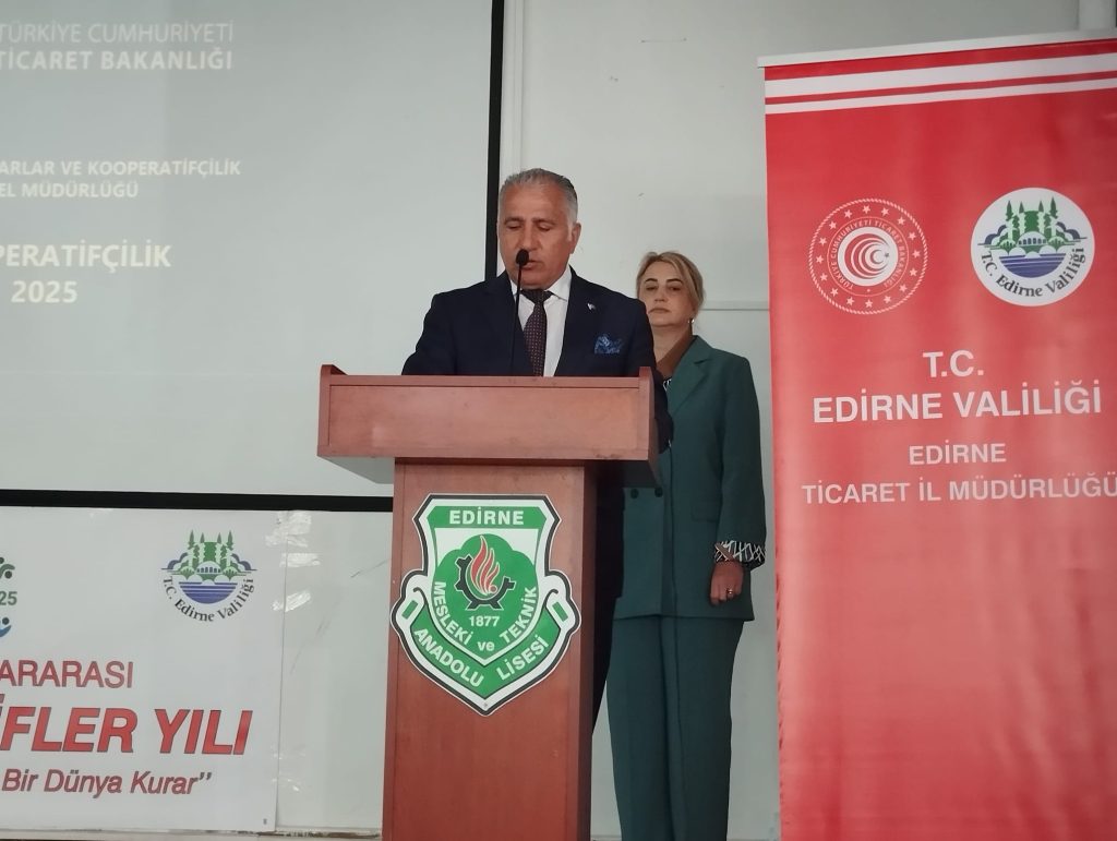 Birleşmiş Milletler tarafından ilan edilen Uluslararası Kooperatifler Yılı etkinlikleri kapsamında Edirne Valiliği ile Edirne Ticaret İl Müdürlüğü işbirliğince okullarda kooperatifçilik eğitimleri verilmeye başladı. İlk eğitim bugün Edirne Mesleki ve Teknik Anadolu Lisesi’nde verildi. Açılış konuşmasını yapan Edirne Ticaret İl Müdür Vekili Mustafa Kurt; “Yüz yıllık bir maziye sahip olan kooperatifçilik kültürünün gelecek nesillere aktarılması, karşılıklı yardım, dayanışma ve demokrasi temelli kooperatif yapılanmalarına ilişkin farkındalığın artırılması için kaçırılmayacak bir fırsattır” diyerek verilecek olan eğitimlerin önemine vurgu yaptı.
