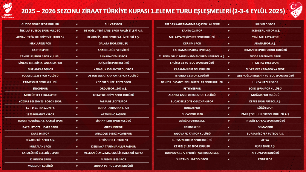 2025-2026 sezonu Ziraat Türkiye Kupası heyecanı başlıyor. Türkiye Futbol Federasyonu (TFF) tarafından yapılan açıklamaya göre, bu sezon 155 takımın katılımıyla düzenlenecek kupa organizasyonunda Edirnespor’un rakibi de netleşti.