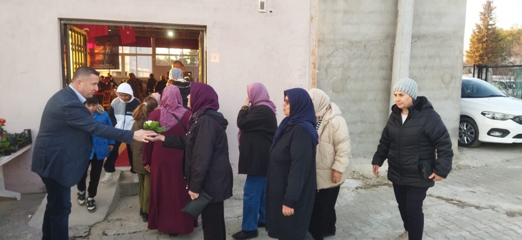 Başkan Geldi kadınları kapıda çiçeklerle karşıladı