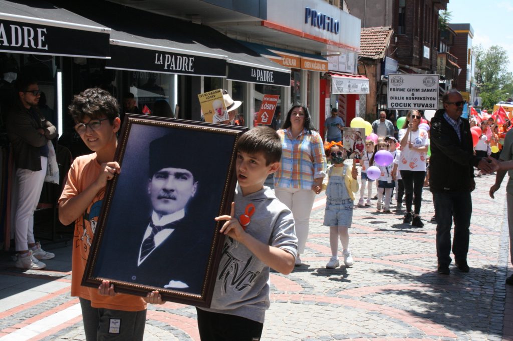 Kentin Saraçlar Caddesi’ndeki 25 Kasım Stadı önünde başlayan yürüyüş, Edirne Belediye Bandosu eşliğinde Atatürk Anıtı’na ilerledi. Çok sayıda öğrencinin, ellerinde balonlar, Türk bayrakları ve dövizlerle katıldığı yürüyüşe; Edirne Belediye Başkan Yardımcısı Ertuğrul Tanrıkulu, LÖSEV Edirne İl Temsilcisi Ceylan Toker ve belediye meclis üyeleri de katıldı.