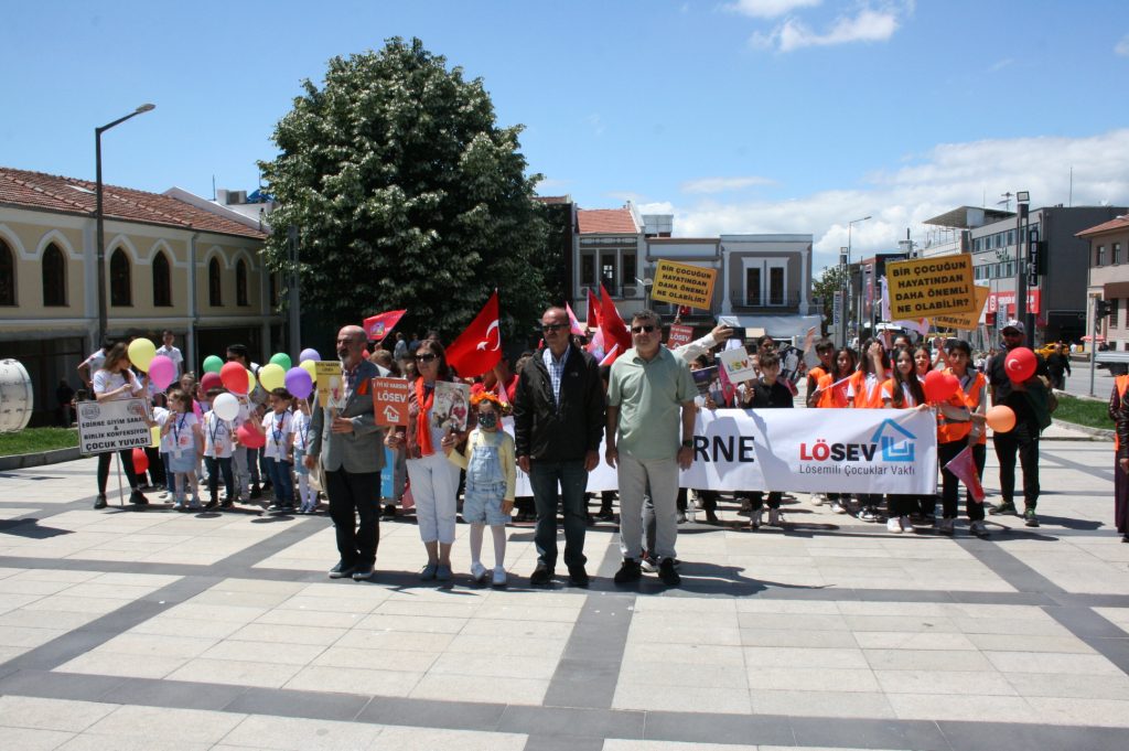 Edirne’de Lösemili Çocuklar Vakfı (LÖSEV) İl Temsilciliği tarafından bu yıl 81 ülkede 26 Mayıs – 2 Haziran tarihleri arasında kutlanan ‘Uluslararası Lösemili Çocuklar Haftası’ dolayısıyla farkındalık yürüyüşü düzenlendi.