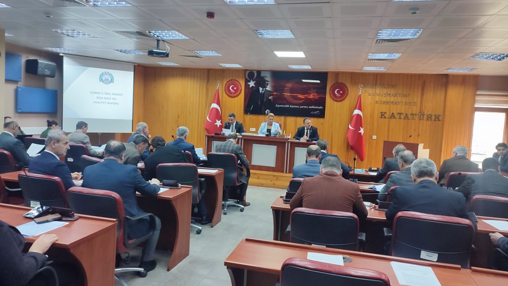 Edirne Vali Yardımcısı İl Özel İdaresi Genel Sekreter Vekili Eyyüp Batuhan Ciğerci, özel idarenin 2024 mali yılı faaliyet raporunu paylaşmak üzere Edirne İl Genel Meclisi’nin Mart ayı toplantılarının 3’üncü birleşimine katıldı. Toplantıda konuşan Ciğerci, özel idarenin 2024 yılında yaptığı yatırımları anlatırken, 2025 yılında yapılacak olan çalışmalar hakkında da bilgi paylaştı.