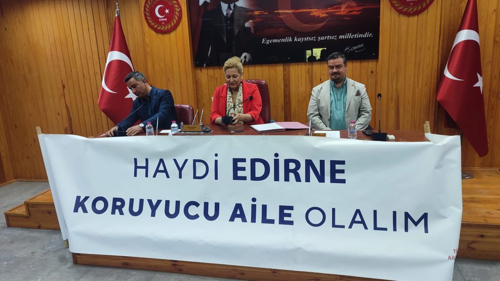 Edirne İl Genel Meclisi’nin Temmuz ayı oturumlarının 2’nci birleşiminde, Aile Sosyal Hizmetler Müdürlüğü’ne bağlı Koruyucu Aile Biriminde görevli Hazal Erel Arslan ve Hande Doğru meclise konuk olarak, koruyucu ailelik sistemiyle ilgili meclis üyelerini bilgilendirdi. Toplantı öncesi meclis başkanlık makamına ‘Haydi Edirne Koruyucu Aile Olalım’ yazılı pankart asıldı.