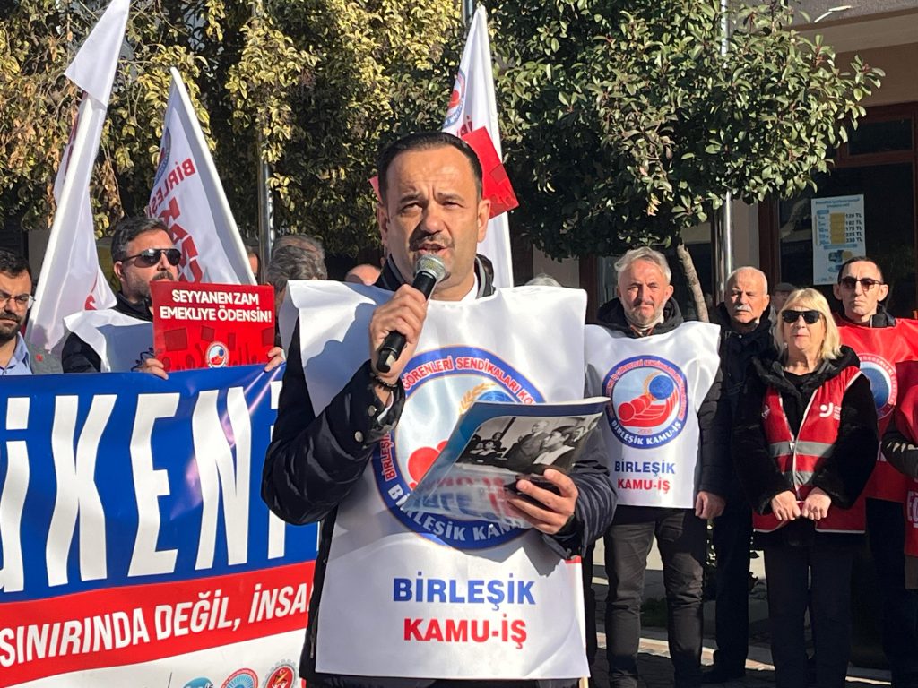 Haklarının iade edilmemesi durumunda mücadeleyi sürdüreceklerini vurgulayan Koç, “Birleşik Kamu-İş olarak altını bir kez daha çiziyoruz: Bugün gerçekleştirdiğimiz iş bırakma eylemi bir uyarıdır. Kamu emekçileri, gasp edilen hakları teslim edilmedikçe üretimden gelen gücünü kullanmaya ve demokratik haklar çerçevesinde mücadelesini sürdürmeye devam edecektir. Nasıl belirlendiği belli olmayan, gerçekleri yansıtmayan enflasyon rakamlarını, ekonomik krizin faturasının emekçiye kesilmesini ve milli gelirden almamız gereken payın gasp edilmesini kabul etmiyoruz” ifadelerini kullandı.