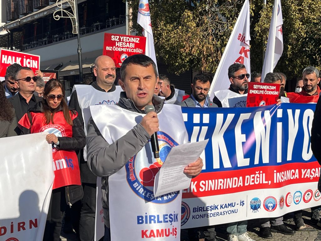 Birleşik Kamu-İş’in yaptığı çalışmalarla açlık ve yoksulluk sınırındaki artışı düzenli olarak kamuoyuyla paylaştıklarını vurgulayan Zobar, “Bu gerçekleri defalarca yetkililerin dikkatine sunduk. Konfederasyonumuzun Ar-Ge birimi KAMU-AR’ın verilerine göre Kasım 2025 itibarıyla açlık sınırı 30 bin 327 lira, yoksulluk sınırı ise 93 bin 697 liraya yükseldi. Bu tablo, kamu emekçilerinin büyük çoğunluğunun yoksulluk sınırının çok altında yaşadığını ve alım gücünün her geçen gün eridiğini açıkça gösteriyor. Bu, daha da zor günlerin kapıda olduğunun göstergesidir. İktidar, kendi yarattığı krizin bedelini utanmadan emekçilere ödetmeye çalışıyor. Toplu sözleşme masasında memurun sesi duyulmadı, asgari ücret masasında işçi yok sayıldı, şimdi de bütçe halktan toplanan vergilerle oluşturulmasına rağmen emekçiler yok sayılarak hazırlanıyor. Buna artık yeter diyoruz” şeklinde konuştu.