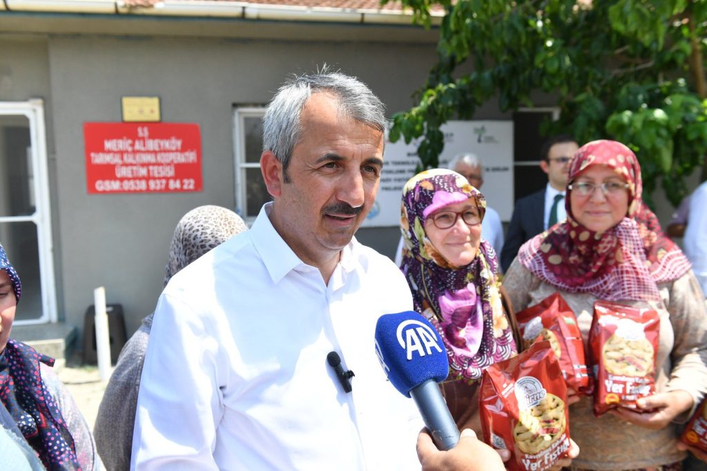 Meriç’e bağlı Alibeyköy’de bulunan Tarımsal Kalkınma Kooperatifi tesislerini gezerek Meriç yer fıstığı üretimi yapan kadınlarla bir araya gelen Edirne Valisi Yunus Sezer; “Bir çatı altında, sadece pazarlama, paketleme ve kontrollerini yaptırıyoruz. Ama üretimini tamamen ablalarımızla beraber yapıyoruz. İnşallah bütün marketlerde Edirne Yöresel’in, ablalarımızın alın terlerinin, belki Türkiye’nin en kaliteli yöresel ürünlerini; şu anda Edirne’nin tüm marketlerinde var. Yakın zamanda Türkiye’deki tüm marketlerde de görme imkanımız olacak” dedi.