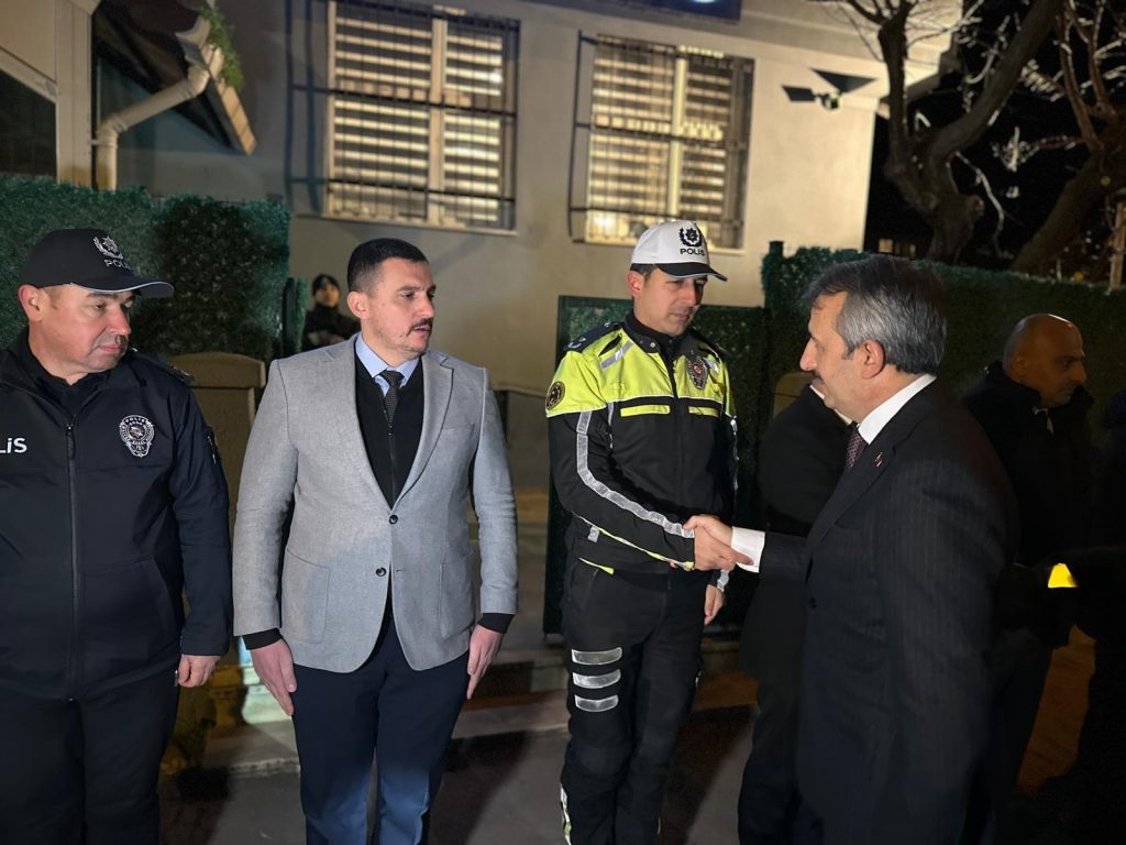 Vali Sezer, 112 Acil Çağrı Merkezi ziyaretinin ardından Cumhuriyet Polis Merkezi Amirliği’ni ziyaret ederek burada nöbet tutan polis memurlarıyla bir araya geldi. Telsizden anons yaparak kent genelinde görev yapan polislerin yeni yılını kutlayan Sezer, "Görev yapan bütün personelimizin yeni yılını tebrik ediyorum. Rabbim ayağınıza taş değdirmesin. Hem sizlerin hem de ailelerinizin huzur içerisinde, bu aziz millete, bu güzel vatana onurla şerefle hizmet edeceğiniz nice yıllar olsun. Hepinize şükranlarımızı iletiyoruz" dedi.