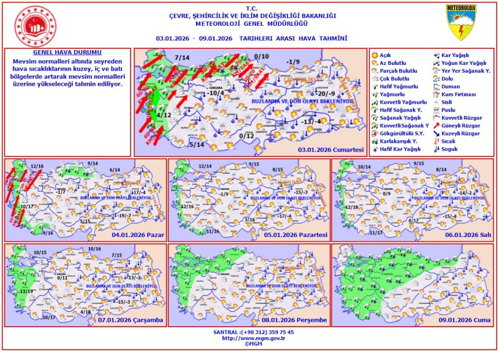 Hafta sonu genel olarak parçalı bulutlu bir havanın etkili olacağı belirtilirken, kuvvetli rüzgâr ve yağış görülen bölgelerde dikkatli olunması çağrısı yinelendi.