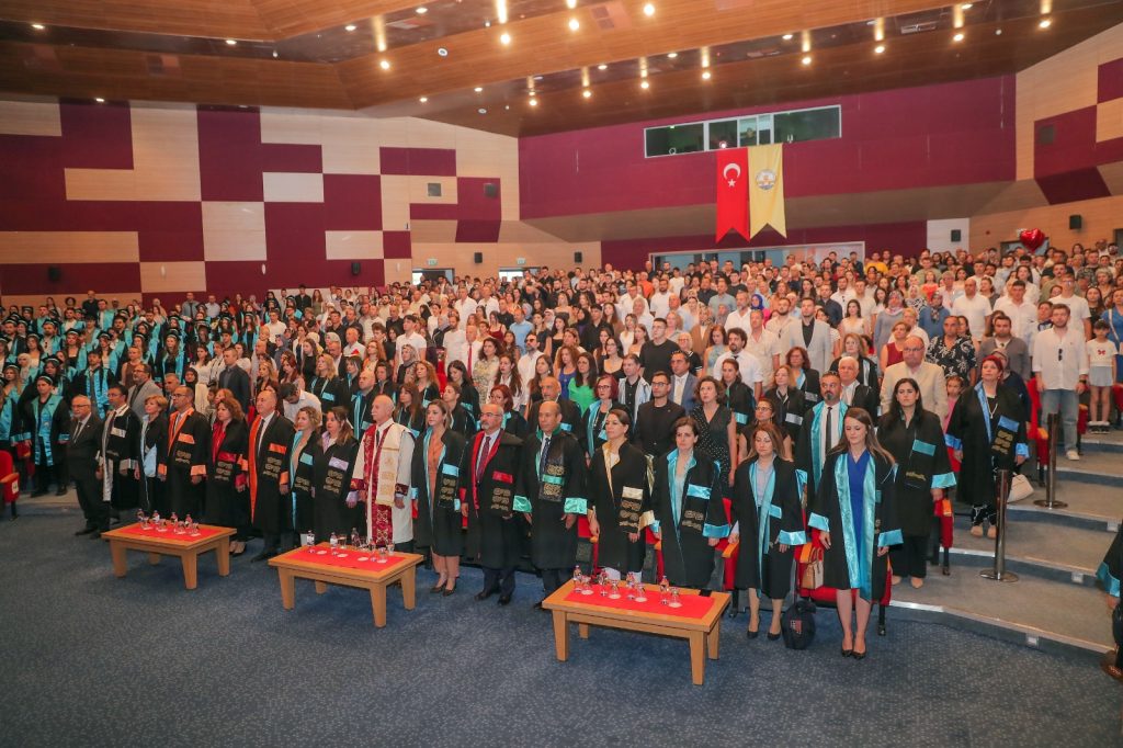 Tören, dereceye giren ve mezun olan öğrencilere plaket ve diplomalarının verilmesinin ardından okunan meslek andı ve geleneksel kep atma töreniyle sona erdi.
