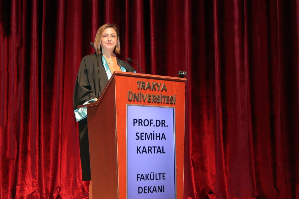 Tören, Edirne Belediye Bandosu’nun mini konseriyle başladı. Açılış konuşmasını Fakülte birincisi Ece Ceylan yaptı. Ceylan, bugüne gelmesinde emeği olan, kendisini bilgi ve sabırla şekillendiren akademisyenlere; maddi ve manevi desteğini esirgemeyen ailesine; birlikte öğrenip büyüdüğü arkadaşlarına teşekkür etti.
