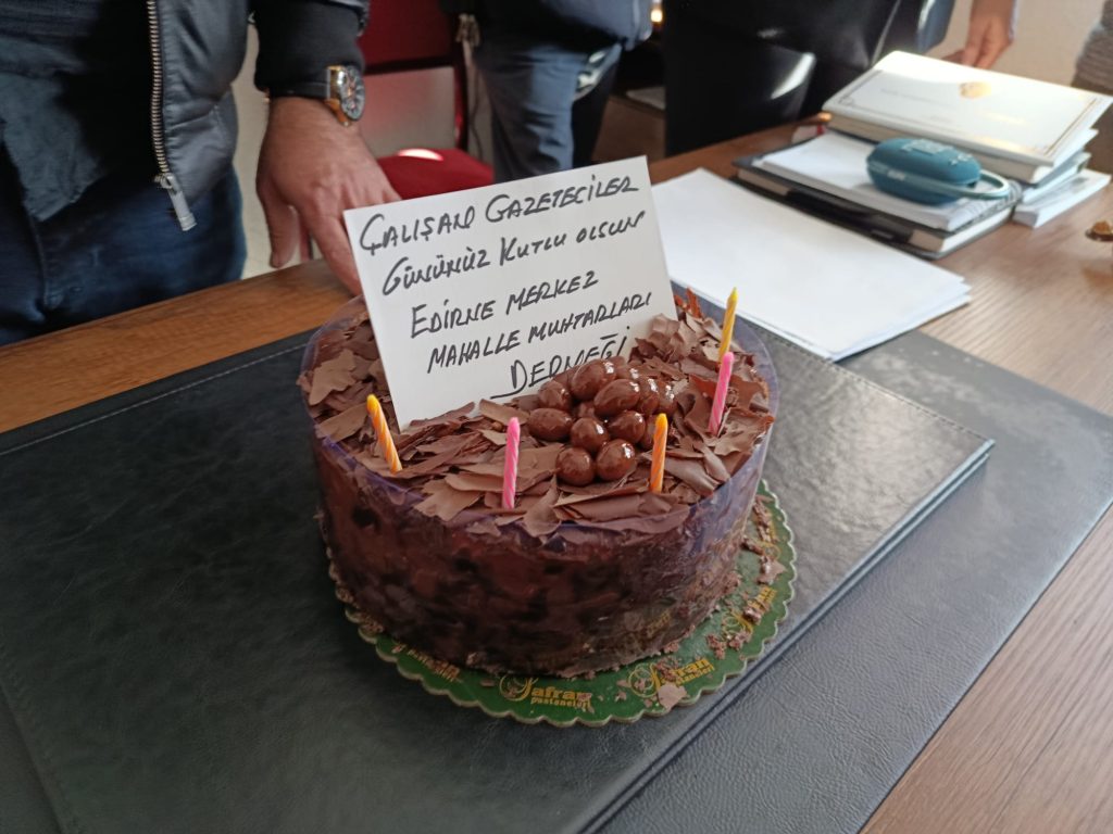 Edirne Merkez Mahalle Muhtarları Derneği tarafından, 10 Ocak Çalışan Gazeteciler Günü dolayısıyla kentte görev yapan basın mensuplarıyla bir araya gelerek pasta kesilerek, gazetecilere anlamlı bir kutlama gerçekleştirildi.