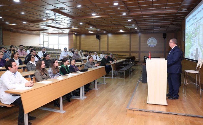 Rektör Prof. Dr. Erhan Tabakoğlu, “Ben 92 yılında Trakya Üniversitesine asistan olarak geldim. Dolayısıyla buranın geçmişini bilen, yaşayan, yaşayarak gören biri olarak Kardiyoloji Anabilim Dalını gururla izliyorum. Bu branşın duayeni Gültaç Hocam tarafından kurulan Kardiyoloji Anabilim Dalı, Fatih Hocam gibi öğrencisini seven, gece gündüz tanımayan, merhametli, insancıl özellikleri çok yüksek değerli bir hocamla devam etti. Şimdi de onun talebesi Servet Hocam çok güzel örnek göstererek bu bayrağı adlı ve daha ileriye götürüyor. Servet Hocam, asistanların akademik gelişimini teşvik edecek ve kaliteye de öncü olacak örnek bir uygulamayı hayata geçirdi. Bu önemli törene özellikle katılmak istedim. Birincisi, içinde Fatih Özçelik Hocam olduğu için. İkincisi de bu güzel uygulamamızın tüm fakültemize örnek olması için. Bu anlamda kendilerine teşekkür ediyor, Fatih Hocama da Allah’tan şifa diliyorum” dedi.