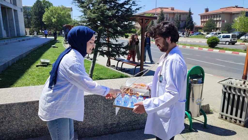 Edirne'de Trakya Üniversitesi Tıp Fakültesi öğrencileri, ülke genelinde aralıklarla devam eden genel boykot kapsamında, ‘6 Günde 1 Boykot’ başlığı altında, kendi imkanlarıyla hazırladıkları yiyecek ve içecekleri, diğer öğrencilere ikram etti.
