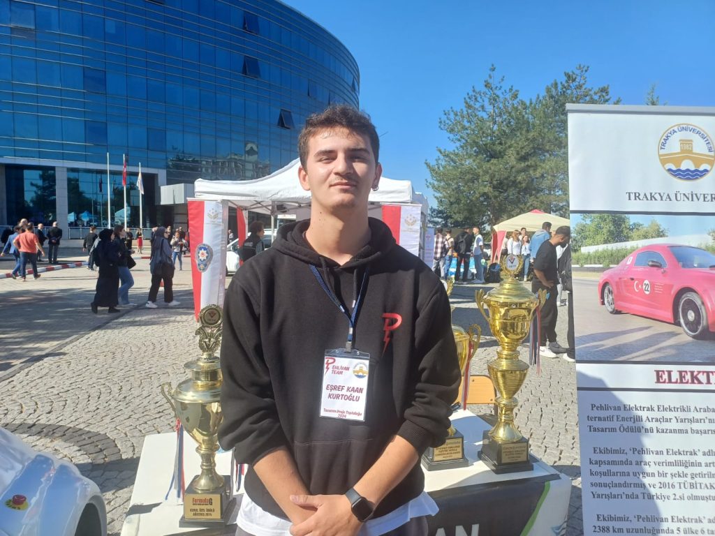 Trakya Üniversitesi’nde öğrenci topluluklarını buluşturan etkinlikte, Trakya Üniversitesi Tasarım Topluluğu Pehlivan Team üyesi Mühendislik Fakültesi Makine Mühendisliği bölümü öğrenciler tarafından üretilen elektrikli ‘Pehlivan’ otomobili de görücüye çıktı. Yoğun ilgi gören otomobilin üreticilerinden Eşref Kaan Kurtoğlu, ‘Pehlivan’ın bu modelinde hedeflerinin en az elektrik kullanarak, aracı verimli şekilde yoluna devam ettirebilmek olduğunu kaydetti.